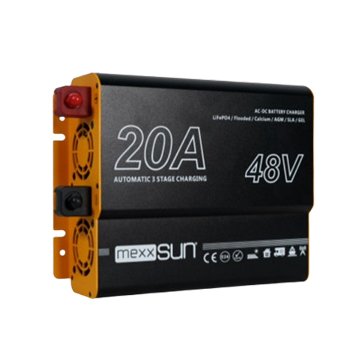 Bu şarj cihazı, 48V akü sistemleri için özel olarak tasarlanmıştır. 20 amper çıkış gücü ile akünüzü hızlıca şarj ederken, gelişmiş akıllı şarj algoritması sayesinde akü sağlığını korur. Sabit akım (CC) ve sabit voltaj (CV) modlarında çalışan cihaz, akü tam doluma yaklaştığında akımı otomatik olarak düşürerek aşırı şarj riskini ortadan kaldırır.